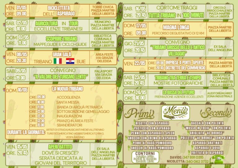 La 43^ Festa Provinciale dell’Asparago torna a Tribano con un calendario ricco di eventi che animeranno tutto il mese di maggio!